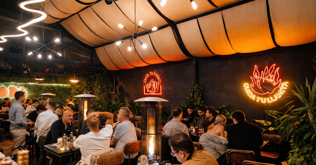 La selva guió el diseño del local: luces de neón, una barra funcional abierta tanto al interior como a la terraza, vegetación abundante, atmósfera envolvente, una estética “salvaje” en platos y coctelería y una curaduría musical diseñada específicamente para acompañar la experiencia.