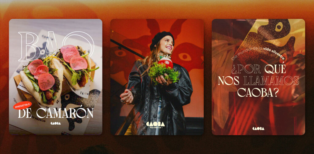Desarrollamos la identidad visual y narrativa, el diseño de interiores y la experiencia presencial y digital del bar Caoba, un oasis urbano en Vitacura, donde gastronomía y relato construyen un ambiente vibrante y natural.